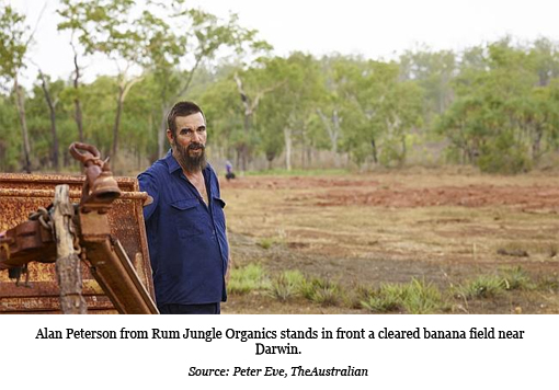 As one of the NT’s six commercial banana growers, Mr Petersen will be paid compensation for the loss of his 2ha of banana trees on his 65ha farm, Rum Jungle Organics, but the cheque will come too late for Mr Petersen and his wife, Jenny. “It was the bananas that made us viable,” he said yesterday.