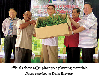 Sixty farmers in Kota Marudu will be the first in Sabah to grow a pineapple variety produced through tissue culture technology under a pilot project, after receiving 20,000 seedlings of the MD2 variety, Monday.