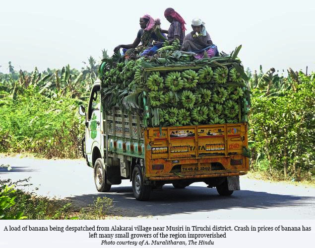 For C. Ramalingam (60), a banana grower of Alakarai near Musiri in the district, life is not as rosy as he finds it difficult to get back the money spent for raising banana on his four acres of land holding.