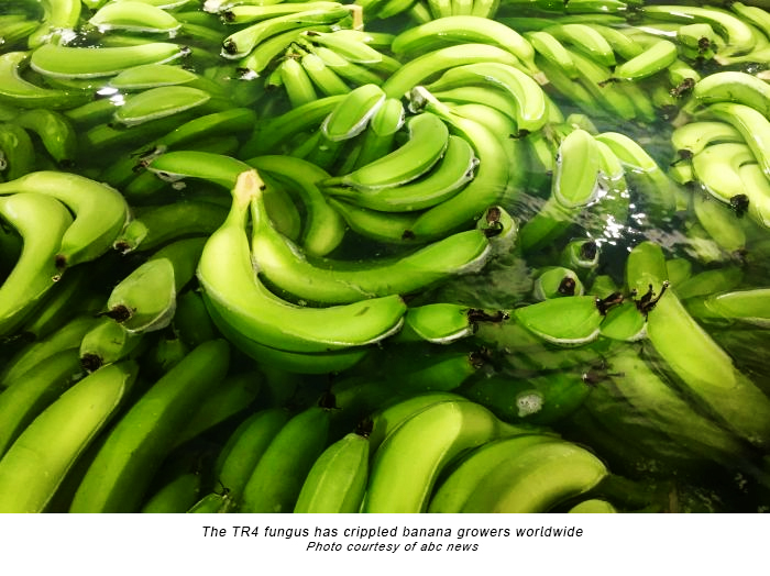 Once TR4 invades a farm or growing region, it stays in the soil for decades, and strict quarantine measures are needed to prevent soil movement to other farms.