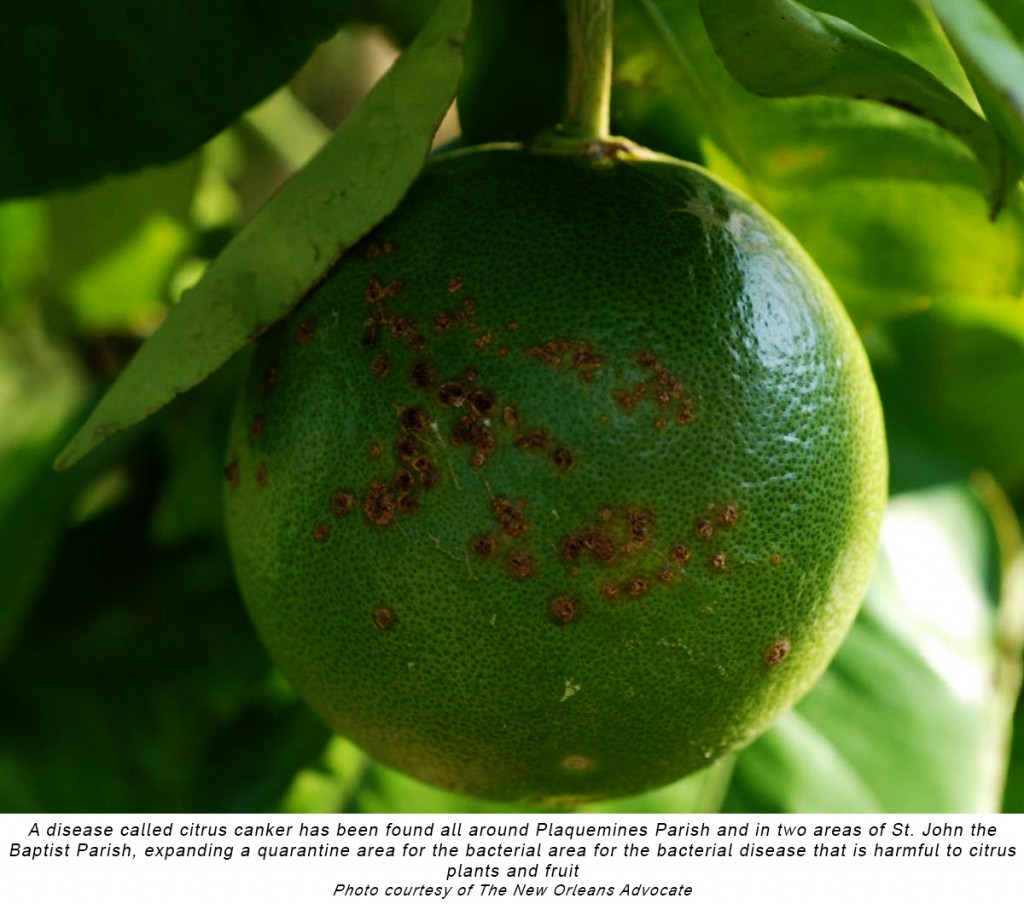 Currently, the entire parishes of Orleans and St. Bernard and portions of Jefferson, St. Charles, Lafourche and Plaquemines parishes are quarantined for citrus canker.